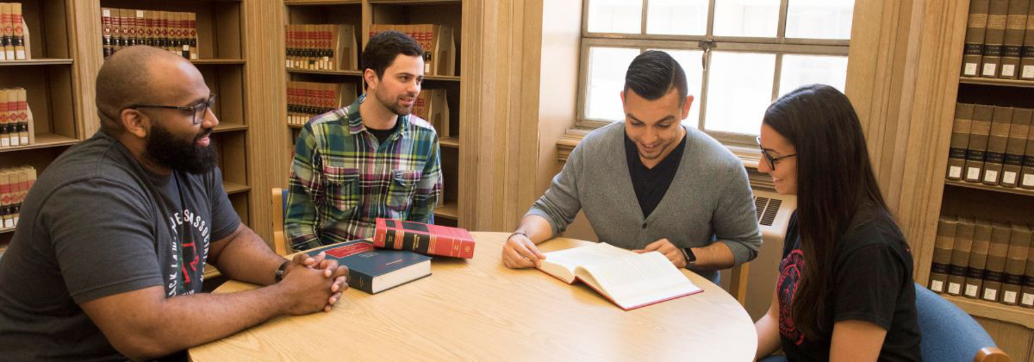 The law library is available for law student quiet study space and for those needing to conduct legal research.